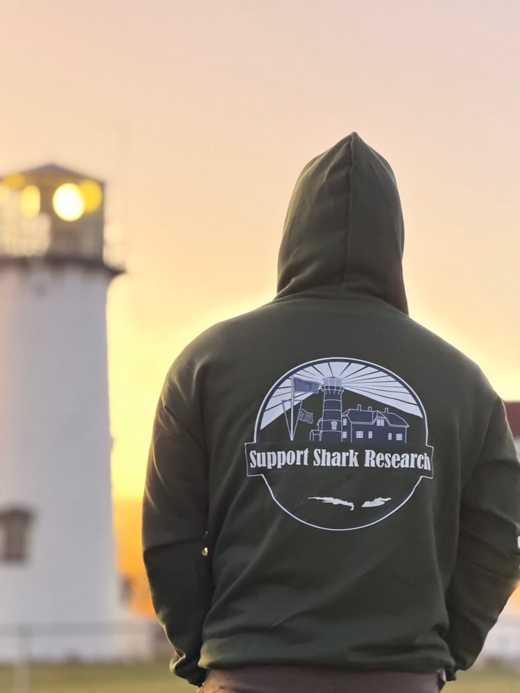 Hoody Sweatshirt with Chatham Lighthouse Design on Back and Clasper Club Fin Logo on Front Left